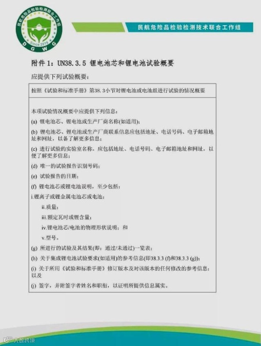 提示:UN38.3试验概要应有具备资质的检验机构、检测机构出具,建议资质以取得CNAS资质证书为主。