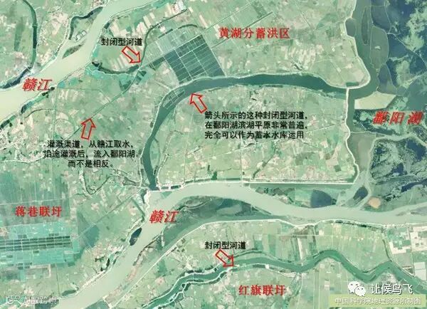 鄱阳湖蒋巷联圩附近的多处“封闭型河道”,可以作为蓄水水库使用,完全能够满足枯水季节农田灌溉所需,而不需要建控制整个鄱阳湖的水利工程。