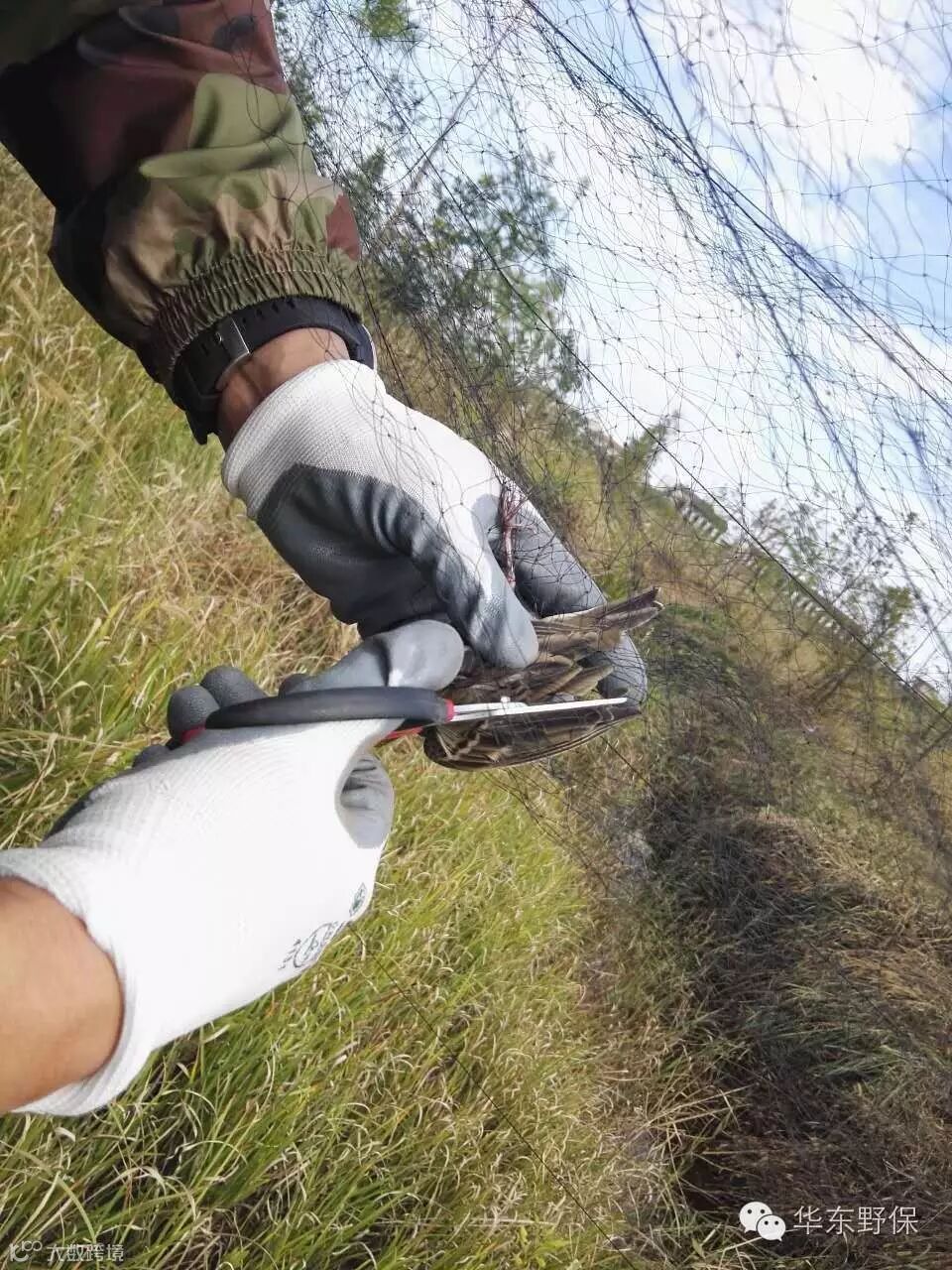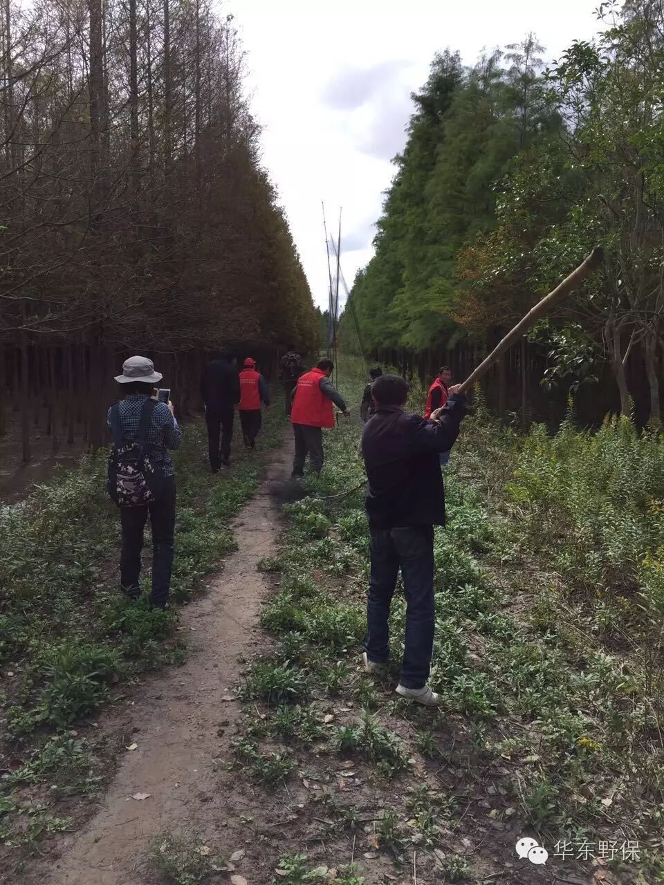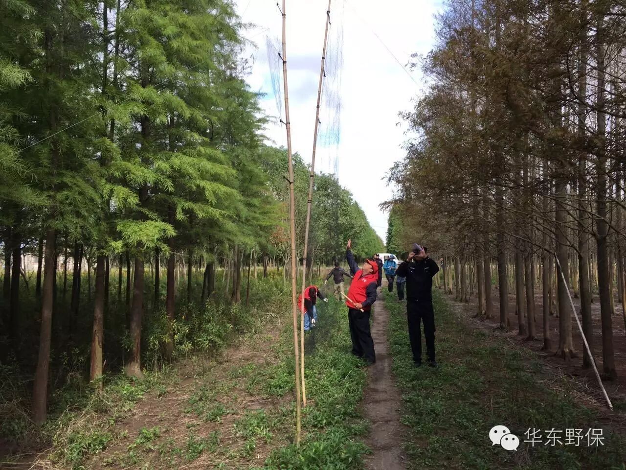 2016年10月30日,上海清网护鸟志愿者赴崇明陈家镇辖属村庄进行巡护。在奚家港镇一处开放式林地内,发现不少隐藏在才栽种下的树苗间、极难辨识的鸟网。为防止细弱的树苗被风雨摧倒折弯,农人在每排树苗间互相绑上了细细的铁丝。连日丰沛的降水使林地地面积淤不堪,志愿者在一排排铁丝与一丛丛芦苇里徒步行走,不一会儿脚面就染上了露水甚至踏空踩入水坑。林地内不时传来各种不知名的鸟鸣声,教人无法分辨是不是鸟儿们触网后的哀鸣,唯有加快速度拆除捕鸟网,争分夺秒的拯救更多小生命。