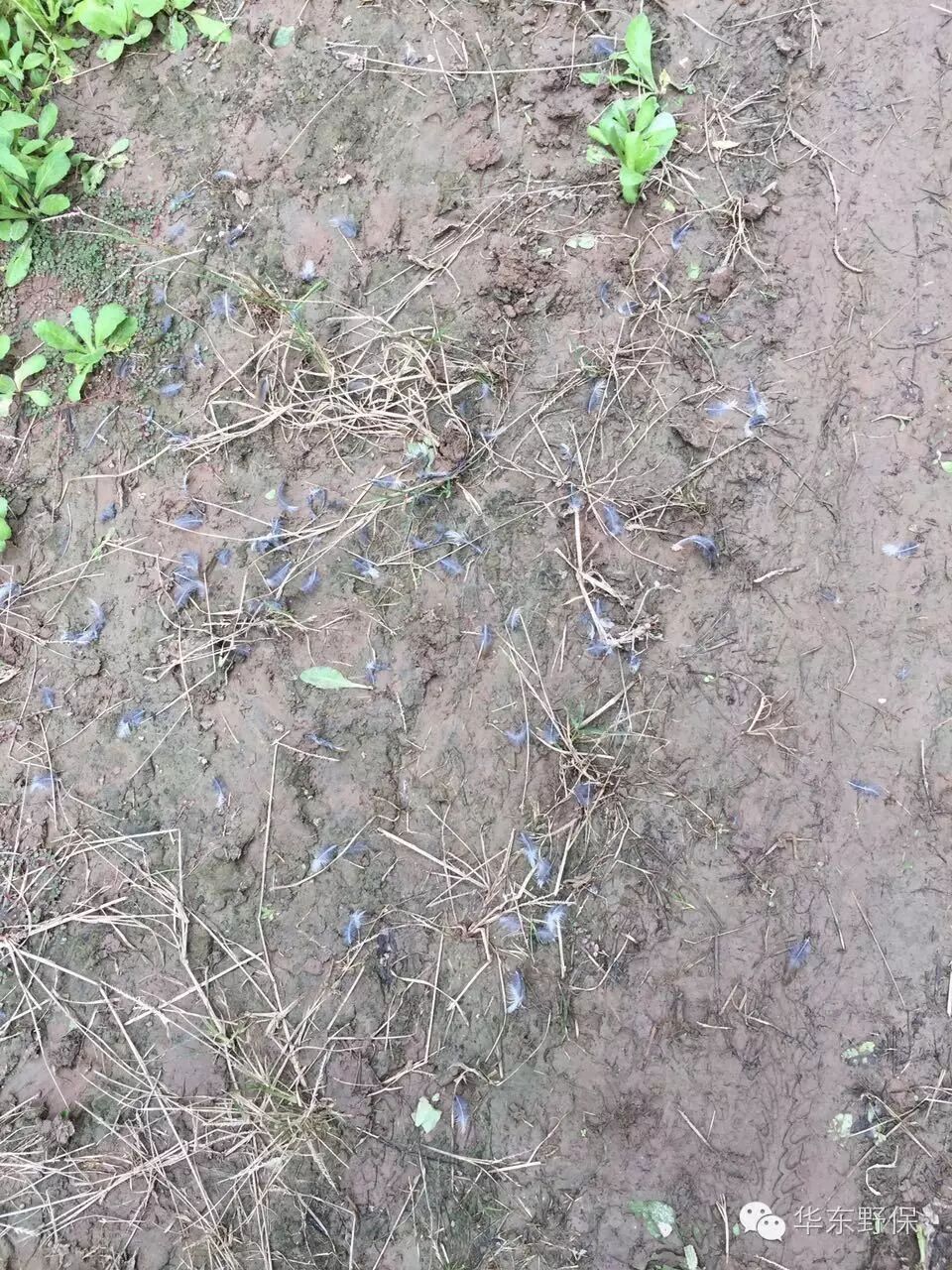 拆网队所经之处,竹竿就七零八落的倒在地上、斜歪在枝丫间,被砍下的鸟网,有一些甚至还未被彻底砍断,连完整性都未被破坏,就这样飘落在泥泞的小路上,喧喧攘攘的林地瞬间又恢复平静,可怜那些挂在网上的鸟尸和零落于泥的羽毛,没有一个工作者、一盏相机,曾为它们停留。
