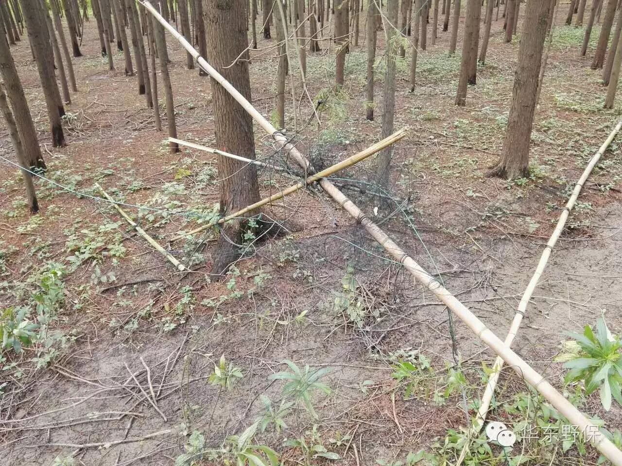 把杉木用铁丝绑在竹竿上才能撑起巨网,杉木何辜?为虎作伥!
