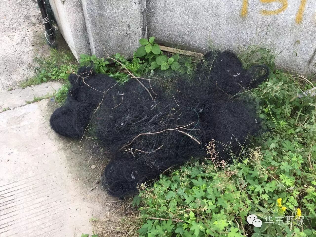 完整的竹竿是留给开发公司继续下网用的吗?我们不知道,但这样的残网,将是刺猬等爬行动物的恶梦
