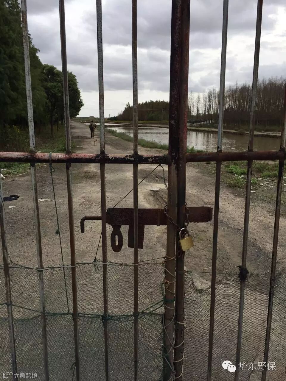 离开这处林地,志愿者对照卫星地图,很快找到了刚刚看到的巨网位置——这是一处没有门楣的封闭式园林,铁门前城墙外一条护园河、一把链条落着锁,阻隔了去路。经向路过的路人打听,当志愿者询问其如何进去到那座房屋处,一村民反映这里“你们进不去的”,因为是“陈家镇开发公司”的用地。队伍中两位男士沿着靠河边的断壁残垣小心翼翼的翻入园林,先行入内欲找人来开门,才走过第一片林子,就用对讲机与门外的我们联系道“林子过道里很多很大的网,两边都是”!边上村民听到了一些,我们也就公开的表明了自己是护鸟志愿者的身份,孰料他后一句更令我们震惊“就你们4个人?今天拆不完的!这里经常有人来拆,但还是有人下网的!”我一惊,随即追问他“你知道是谁下的网吗?”村民看着两位翻墙入内的志愿者一步步向前的背影,脱口而出道“开发公司下的网啊,他们冰柜里都是冻着的死鸟呢!”