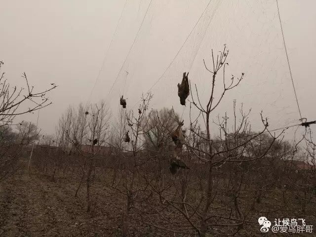 下午又在灯塔和铧子镇附近拆除果农捕鸟网十二张,网上都有鸟类的干尸!!志愿者对果农进行普法宣传后,果农的态度都很好,并保证以后不下捕鸟网来防护果子了,改用防鸟网和驱鸟带。