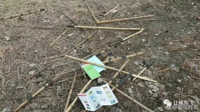 经和辽阳林业局野保处沟通后拆除销毁捕鸟网四张,销毁捕鸟笼具九个,放飞田鹀十一只,黄喉鹀两只,金翅雀一只,三道眉草鹀一只,白头鹀一只。
