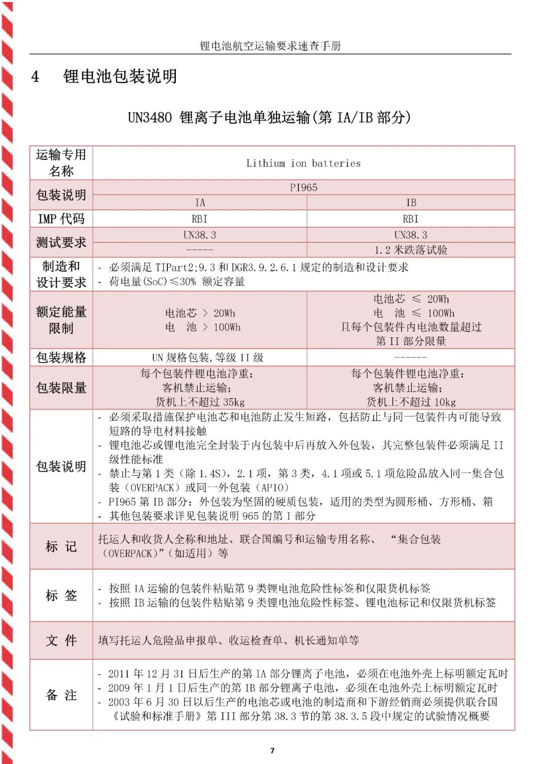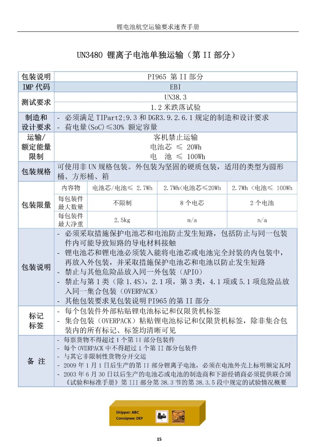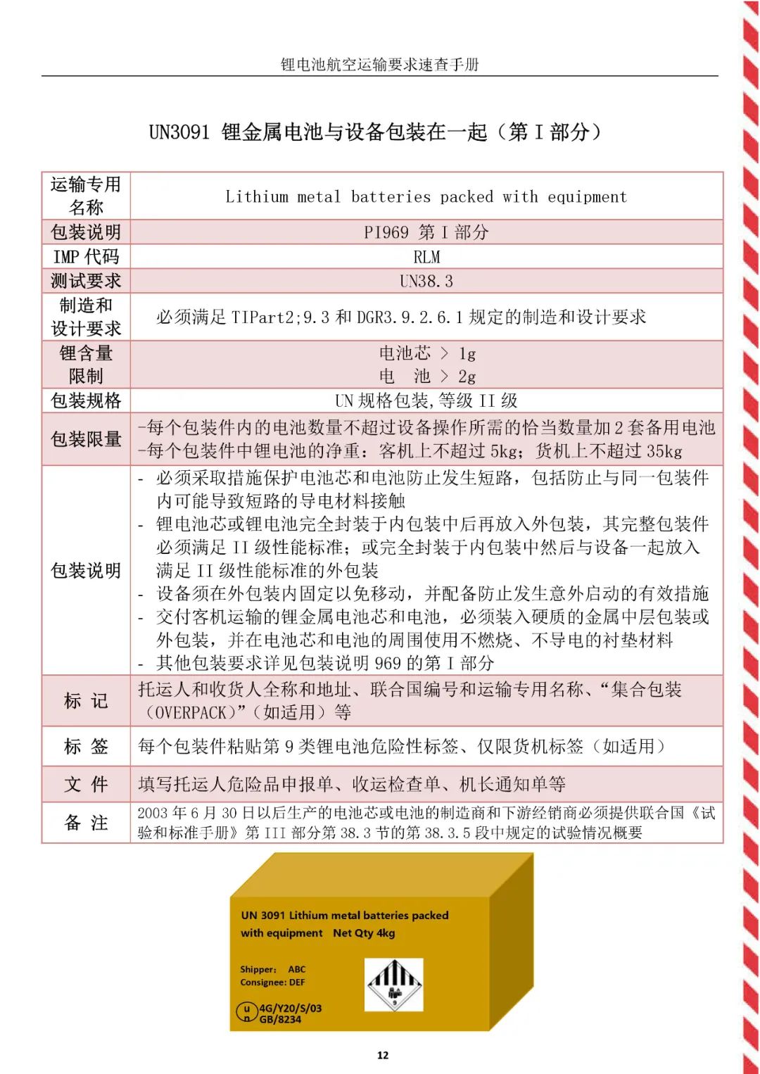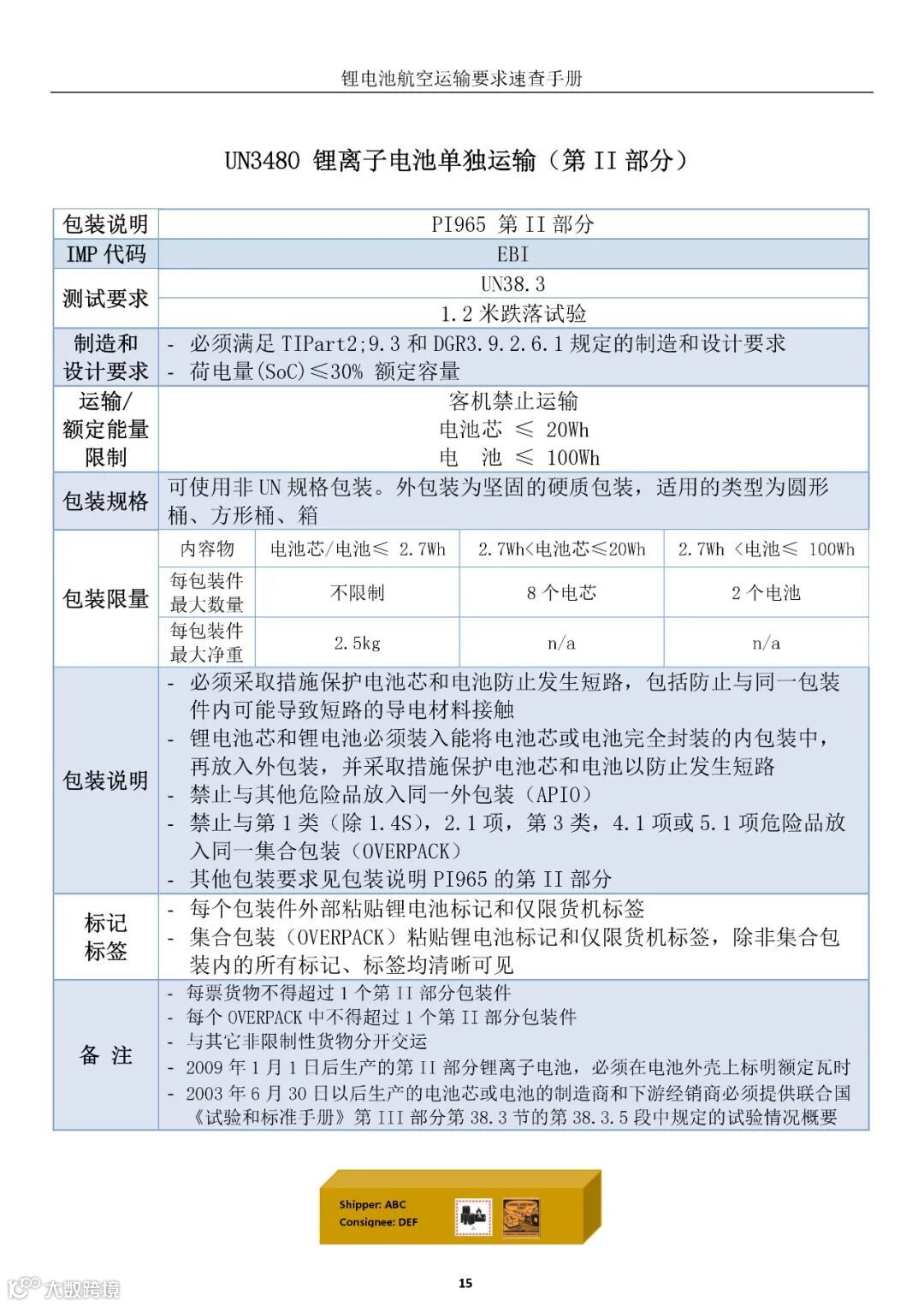 必须确保设备在外包装中不能移动;如包装中有多件设备的必须包装牢固在一起,以防止与包装中的其他设备接触而造成损坏。还修改《托运人声明》Shipper's Declaration(10.8.8.1)中提供危险货物时的航空货运单声明。