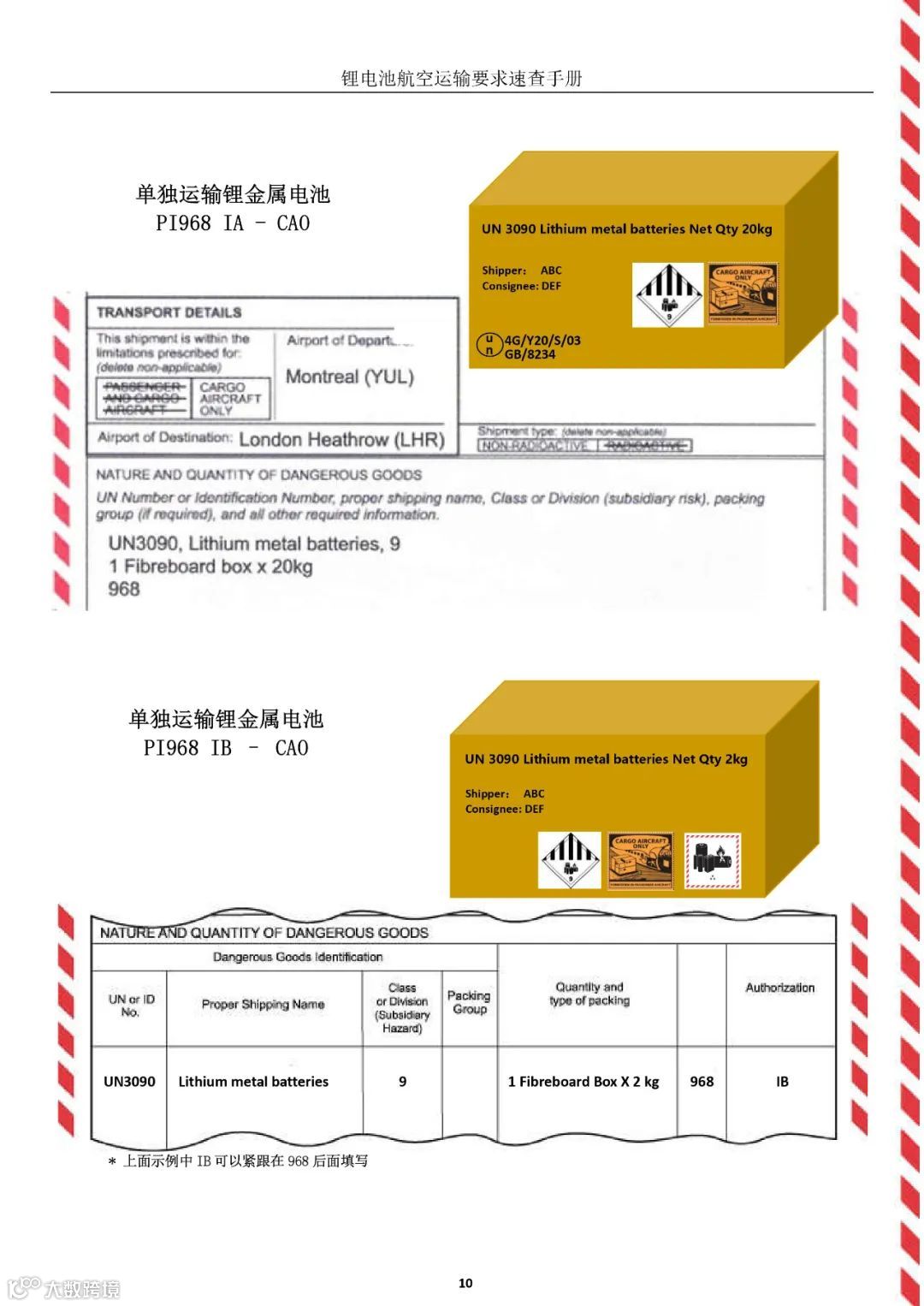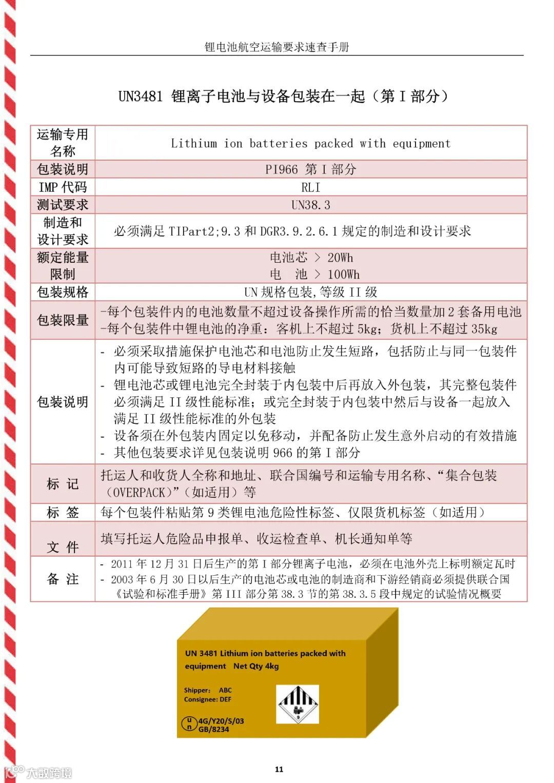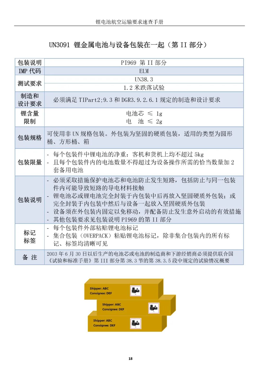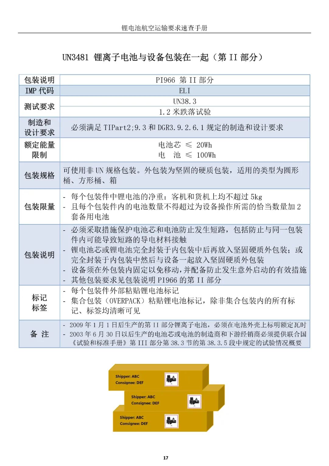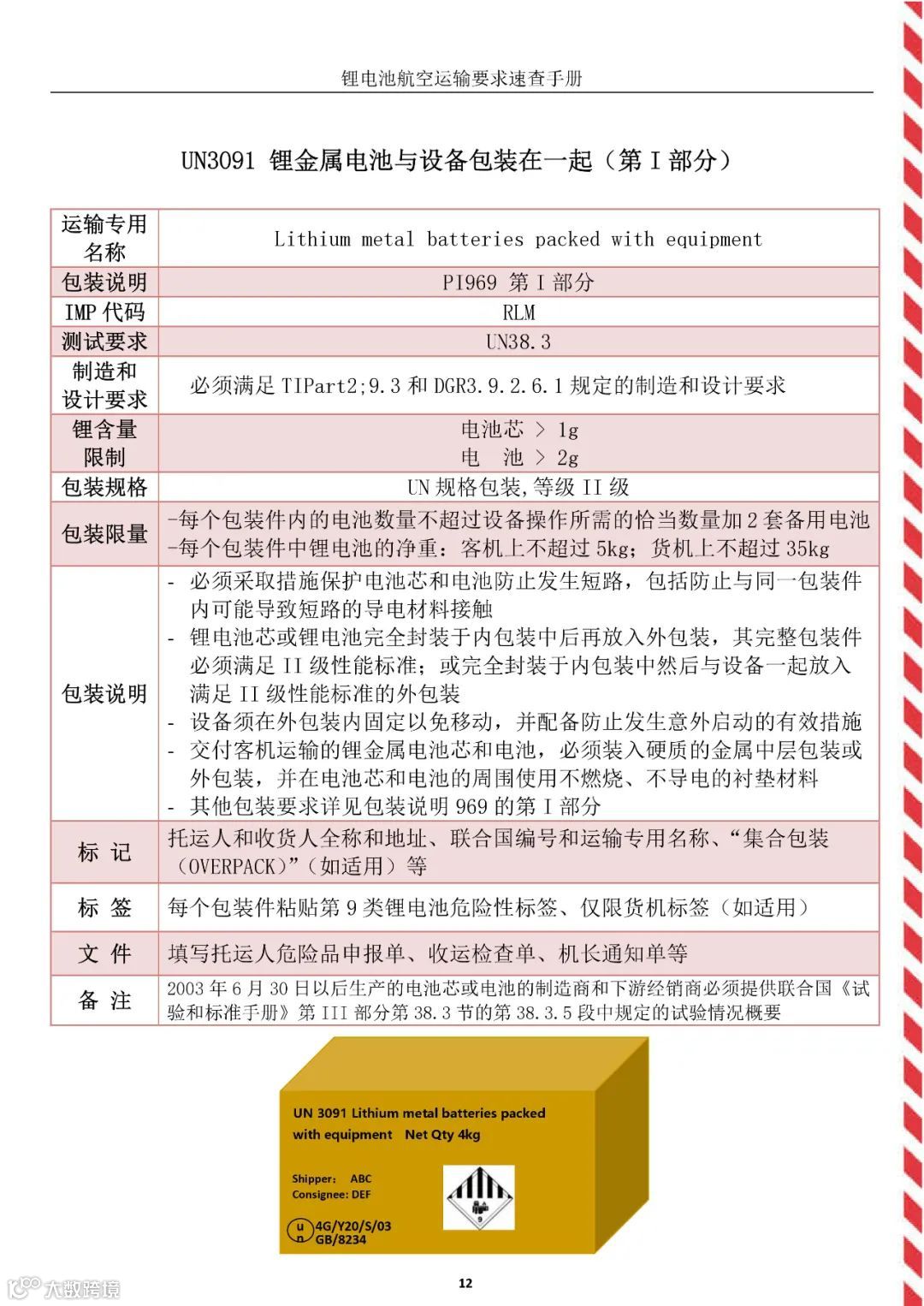 必须确保设备在外包装中不能移动;如包装中有多件设备的必须包装牢固在一起,以防止与包装中的其他设备接触而造成损坏。还修改《托运人声明》Shipper's Declaration(10.8.8.1)中提供危险货物时的航空货运单声明。