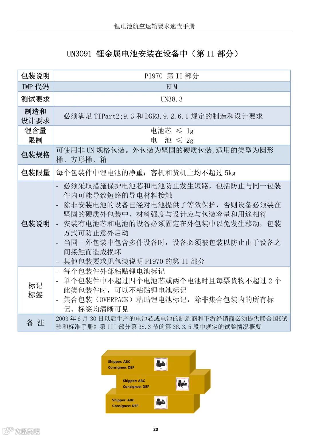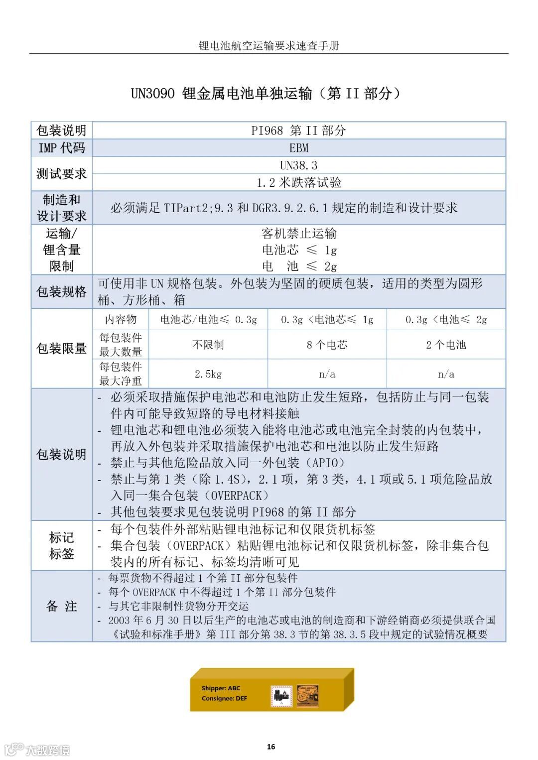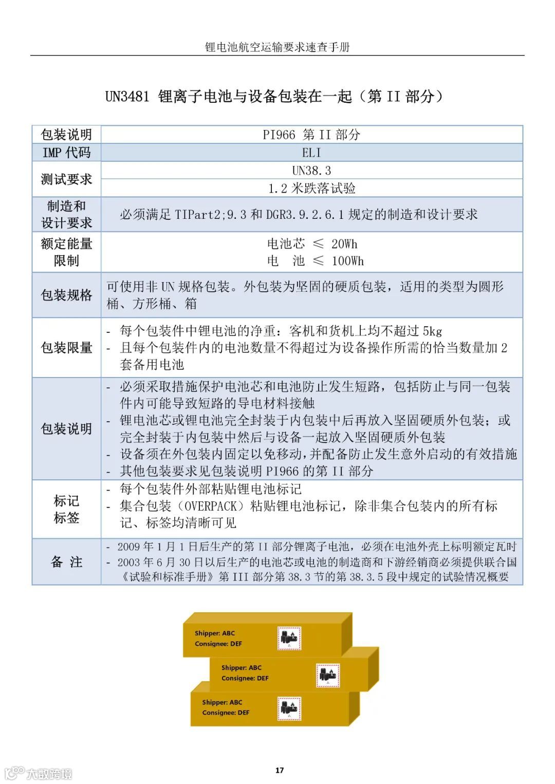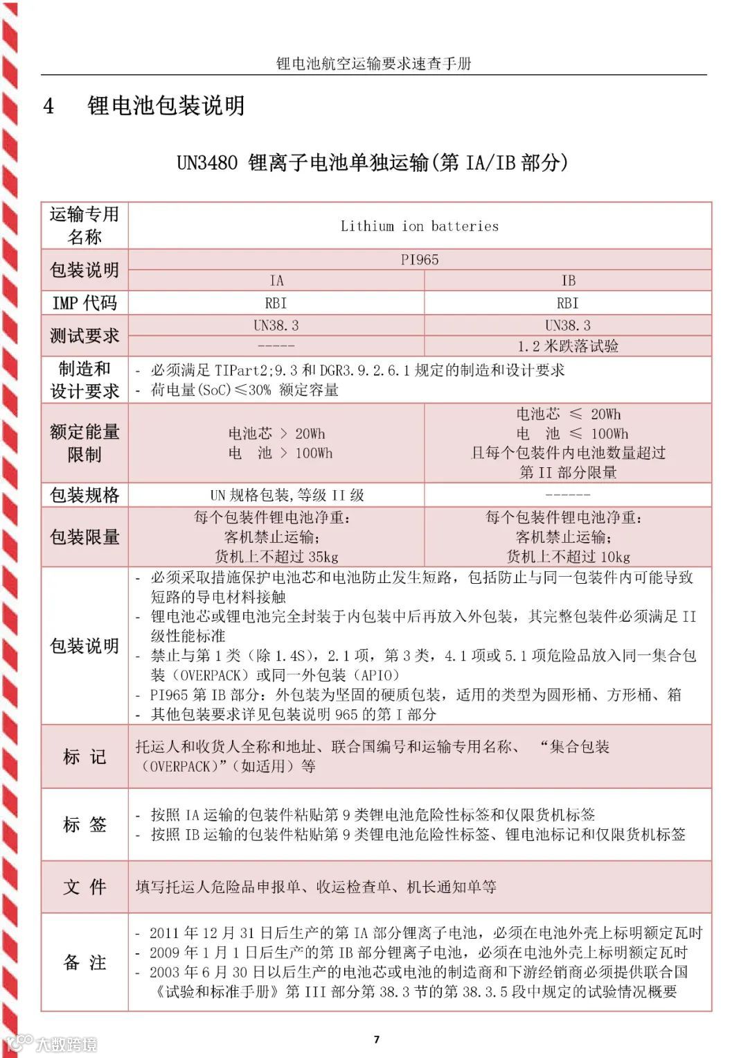 必须确保设备在外包装中不能移动;如包装中有多件设备的必须包装牢固在一起,以防止与包装中的其他设备接触而造成损坏。还修改《托运人声明》Shipper's Declaration(10.8.8.1)中提供危险货物时的航空货运单声明。
