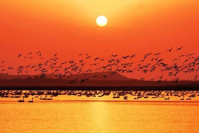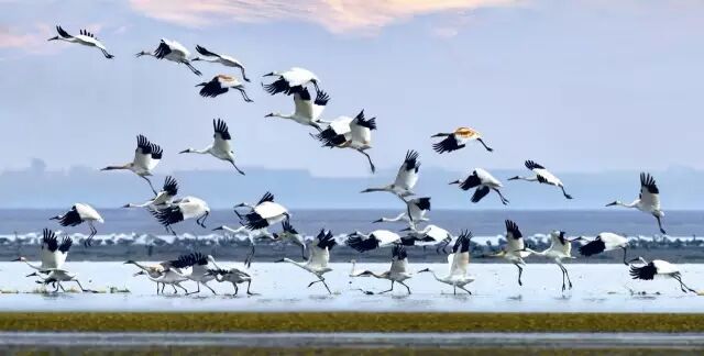 鄱阳湖是著名的国际重要湿地,为长江流域的重要一个过水性、吞吐型、季节性的浅水湖泊。全球99%白鹤、30-40%的白头鹤、20-30%白枕鹤、80-90%东方白鹳,还有60%以上的鸿雁等水鸟在鄱阳湖越冬。