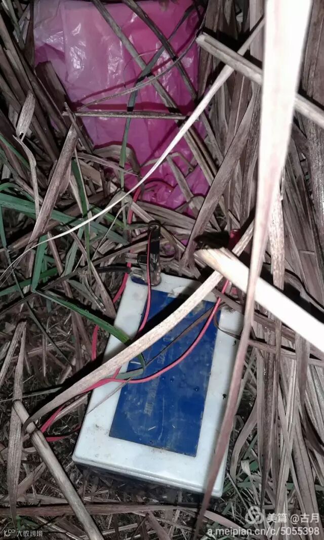 悄悄的钻进去,蹲守,招呼森林公安前来。一面人在棚子后面蹲守,我们几人寻找鸟网和诱鸟器,在找到后,商量一番后,把声音关掉,躲起来,等捕鸟人出来接电线时抓铺,奈何,捕鸟人悄悄离开了。估计是周边的村民提前告知了。