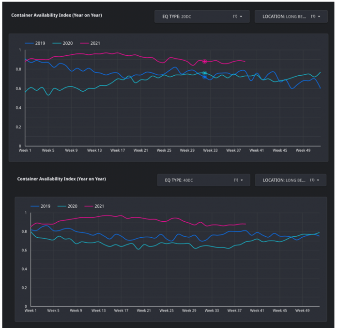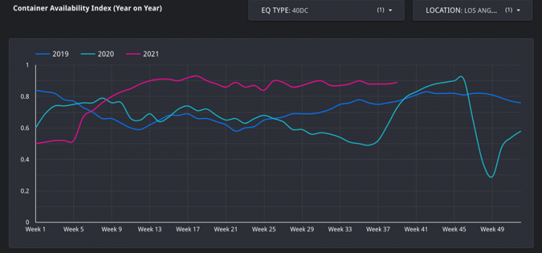 根据Container xChange报告,与2020年同期相比,2021年8月的CAx值平均增长了60%。这表明,与去年同期相比,洛杉矶港口的进港集装箱比去年增加了60%。