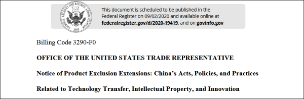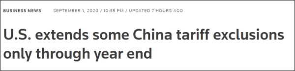 美国贸易代表办公室此前授予这些产品1年的关税豁免期,最新的公告并未说明将关税豁免期限仅再延长4个月的具体原因。
