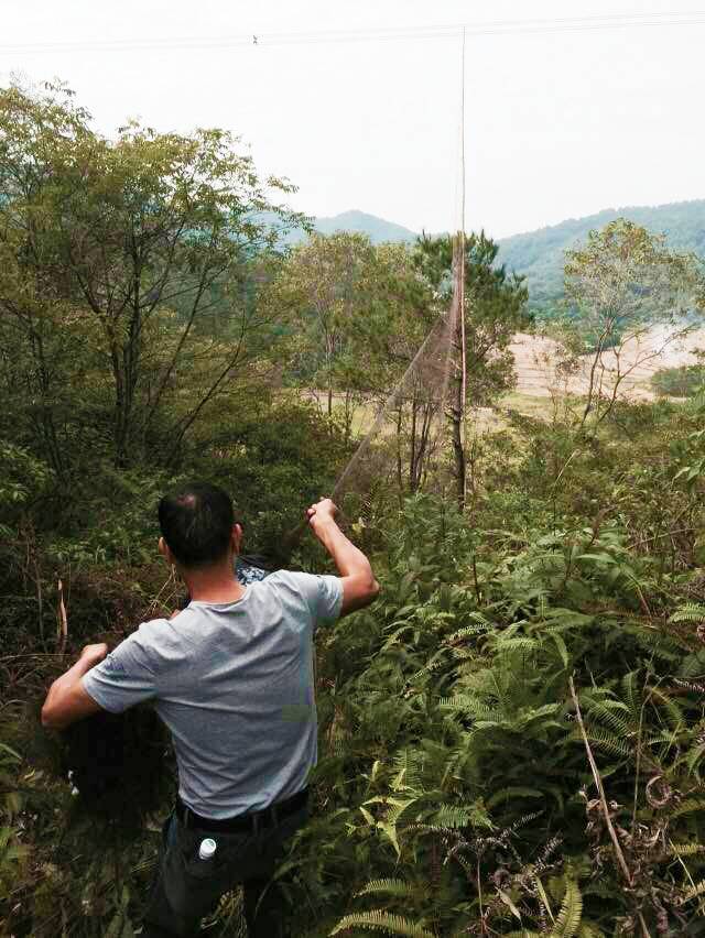 第一步:快速检查整个捕鸟网,解救网上的活鸟;