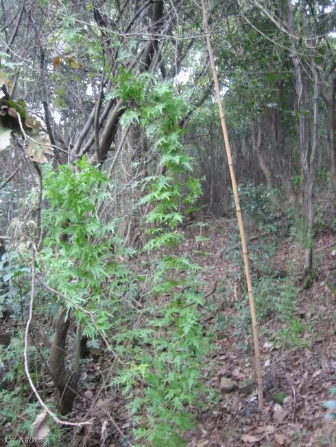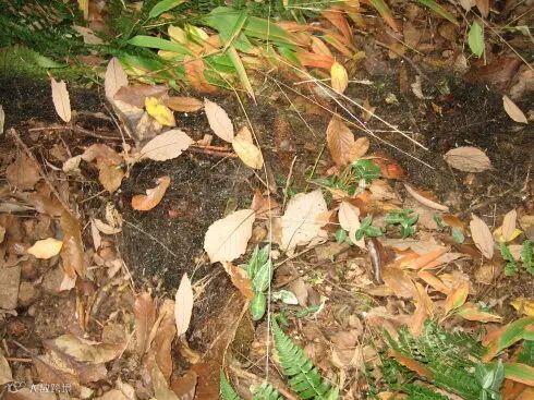 ——山坡上种着不少杨梅,散落在杨梅林间,之前被拆下的捕鸟网。