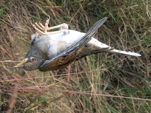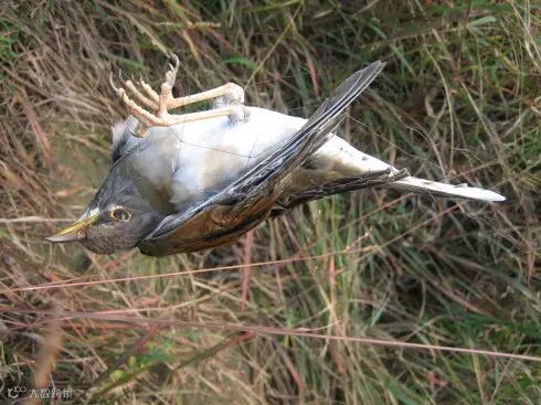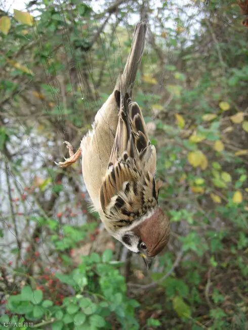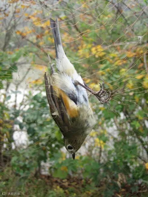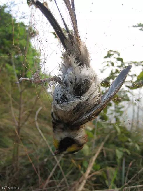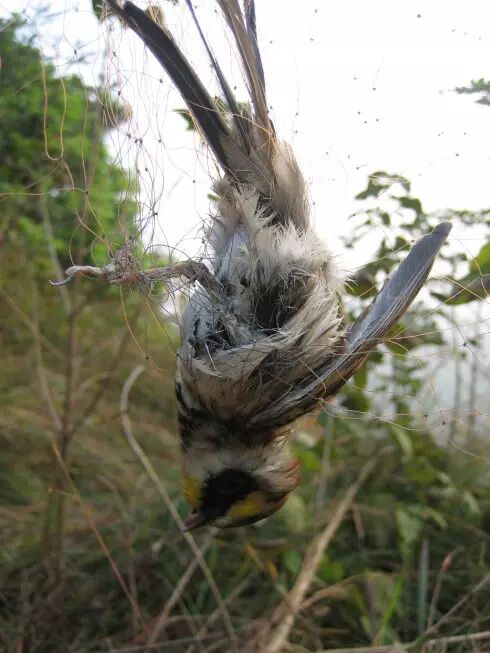 ——在凤凰山山脚下的一张捕鸟网上发现的被困野鸟(后被解救并当场放生)