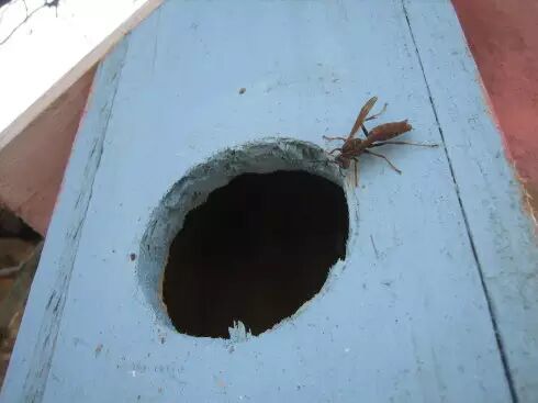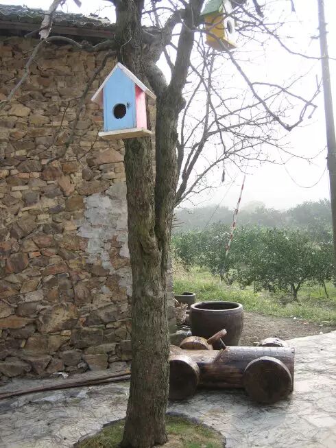 ——“农家乐”外,路边的大树上,悬挂着的卡通版人工鸟巢虽然吸引不来野鸟入驻,但对壁虎、昆虫等小家伙来说,不失为一个遮风避雨的好地方。瞧,这只胡峰似乎对大洞里面的“天地”有了一点兴趣;当然,它也许只是想从木头盒上啃下一些木纤维带去别处加固自己的巢穴。
