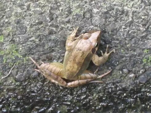 ——凤凰山下,桔园里的水渠中,一只趴在混凝土沟壁上的成蛙