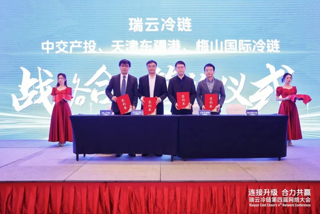 网路大会还举行了战略合作签约仪式,瑞云冷链分别同中交产投、天津东疆港、梅山国际冷链签署战略合作协议,通过多方协作,深化产业融合,共同推动我国冷链物流高质量发展。