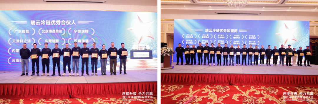 瑞云冷链第四届网络大会特别为过去一年中表现卓越、贡献突出的优秀合伙人和加盟商举行了隆重的表彰仪式,分别颁发了“2023年度优秀合伙人奖”与“2023年度优秀加盟商奖”,过去一年大家充分利用瑞云冷链网络和线上平台拓展业务边界,显著提升了各自的经营业绩,并最终赢得了这份荣誉。
