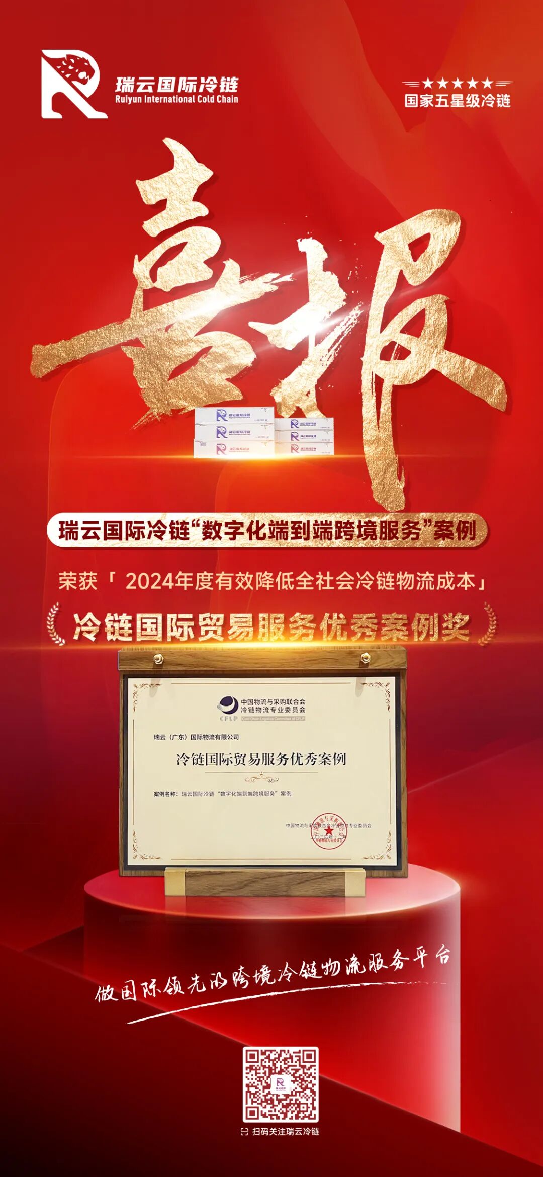 2024年12月13日至15日,2024年第十八届冷链产业年会暨第二届南亚东南亚冷链物流行业高质量发展大会在云南昆明隆重举行。瑞云国际冷链“数字化端到端跨境服务”案例在会上成功入选中物联「2024年度有效降低全社会冷链物流成本优秀案例」,荣获“冷链国际贸易服务优秀案例”奖,为跨境冷链运输质效提升树立了行业标杆。