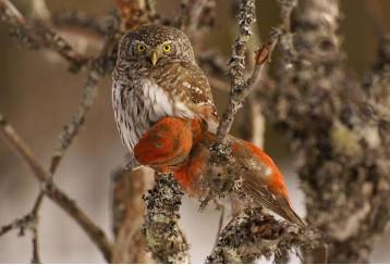 领鸺鹠主要以昆虫和鼠类为食,也吃小鸟和其他小型动物。