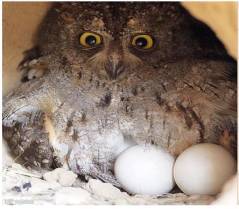 上图是斑头鸺鹠的幼鸟,斑头鸺鹠的繁殖期在3一6月间。通常营巢于树洞或天然洞穴中。每窝产卵3一5枚,多数为4枚。偶尔多至8—9枚和少至3枚。卵为白色。孵卵由雌鸟承担,孵化期为28—29天。 高大乔木的树窟窿、古老建筑的墙缝和废旧仓库的裂隙,都是它们选择筑巢做窝的理想地点。