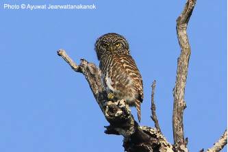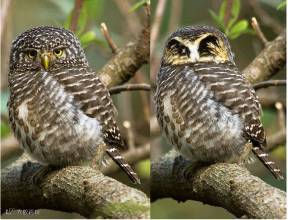 斑头鸺鹠呢,分布在喜马拉雅山脉、印度东北部至中国南部及东南亚。