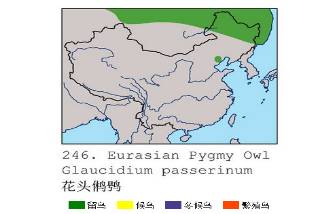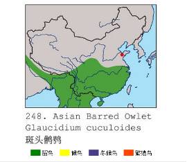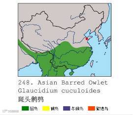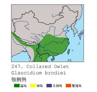 可见,领鸺鹠和斑头鸺鹠在分布上有重复,但是花头鸺鹠有独特性。