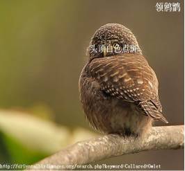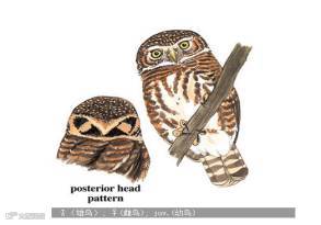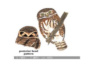 1.领鸺鹠成鸟头顶有白色点斑,颈背有黑色假眼;而斑头鸺鹠成鸟头顶为白色横纹;斑头鸺鹠和花头鸺鹠脑后无假眼。