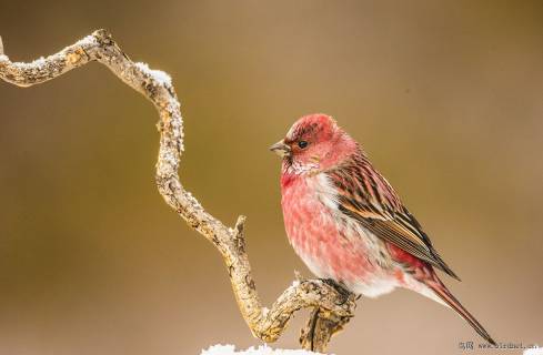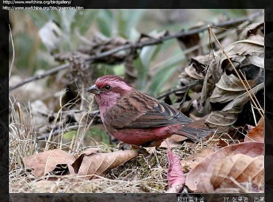 中国朱雀之五-玫红眉朱雀(粉眉朱雀)雄鸟。相比起血雀鲜艳的红色,玫红眉朱雀的淡淡的粉红色显得柔和多了。