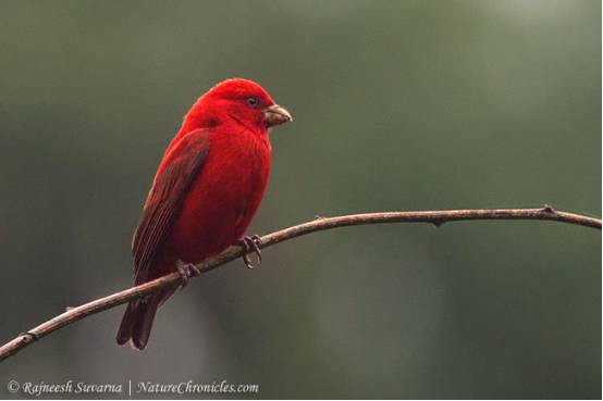 中国朱雀之四-血雀。雄鸟全身具醒目的猩红色。朱雀虽然都是红色,但红色的种类也不太一样(比如有的是酒红色,有的是淡红色),感觉血雀是朱雀中颜色最红的鸟。