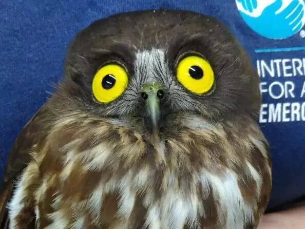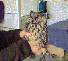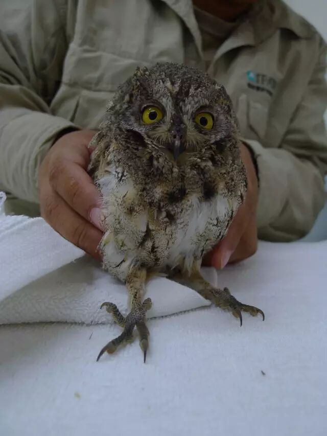康复师正在准备给这只长耳鸮喂药,此刻的牠正在愤怒地破口大骂……
