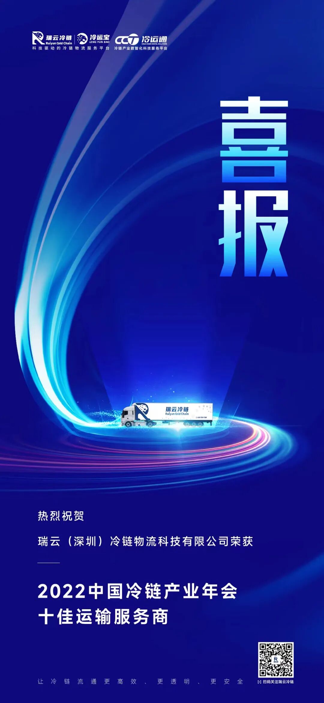 瑞云冷链凭借全场景、数字化、端到端的冷链运输集成服务,荣获2021-2022中国冷链产业金链奖-十佳冷链运输服务商。