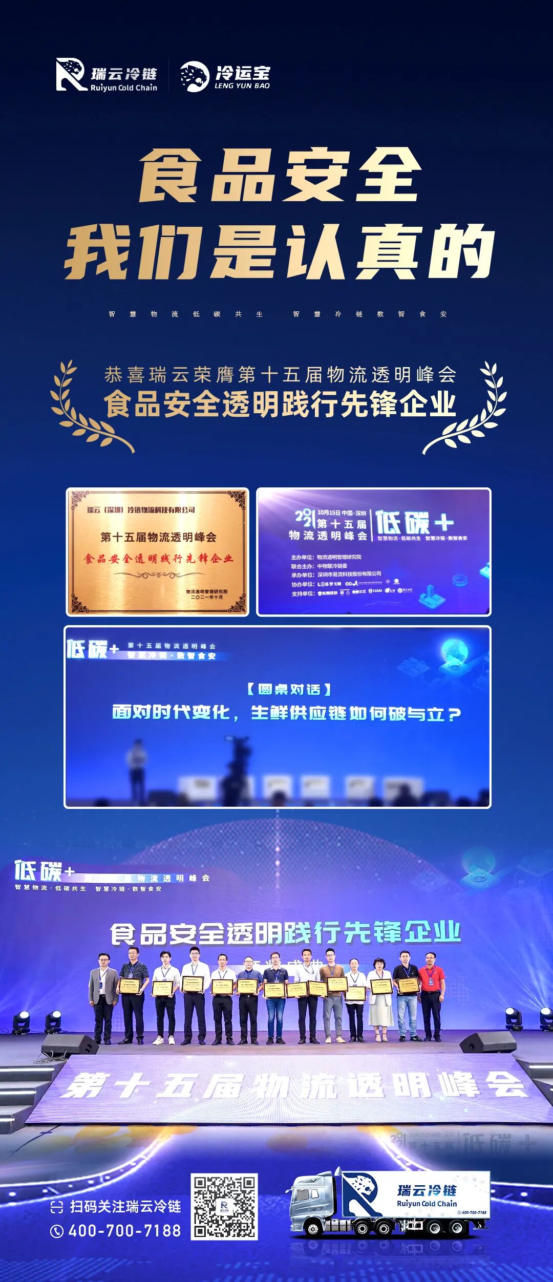 10月16日是每年一度的世界粮食日,世界各国每年这一天都会围绕发展粮食和农业生产举行纪念活动,唤起公众对粮食和农业的高度重视。粮食安全和农业发展离不开高效的冷链运输,瑞云冷链一直践行“绿色冷链”破解农产品运输难题,在10月15日的第十五届物流透明峰会上获得“食品安全透明践行先锋企业”荣誉称号。