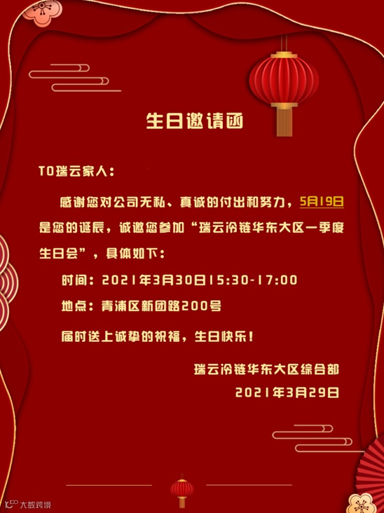 ▲华东大区生日会邀请函,期待其他大区带来更多精彩!