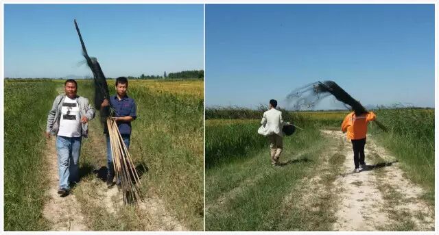 专业捕鸟人 更有架网新武器 :伸缩鱼竿 !