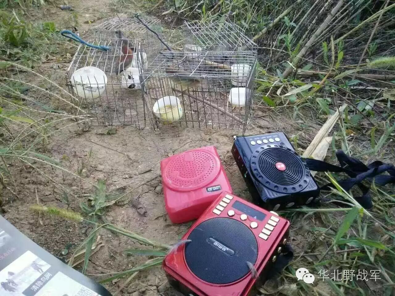 缴获诱捕机6套、诱鸟笼5个(内有2只普通朱雀、3只黄胸鹀),部分鸟网被凌海市森林公安收缴、剩余的已在凌海市森林公安民警和凌海市野保站刘站长的监管下全部烧毁!