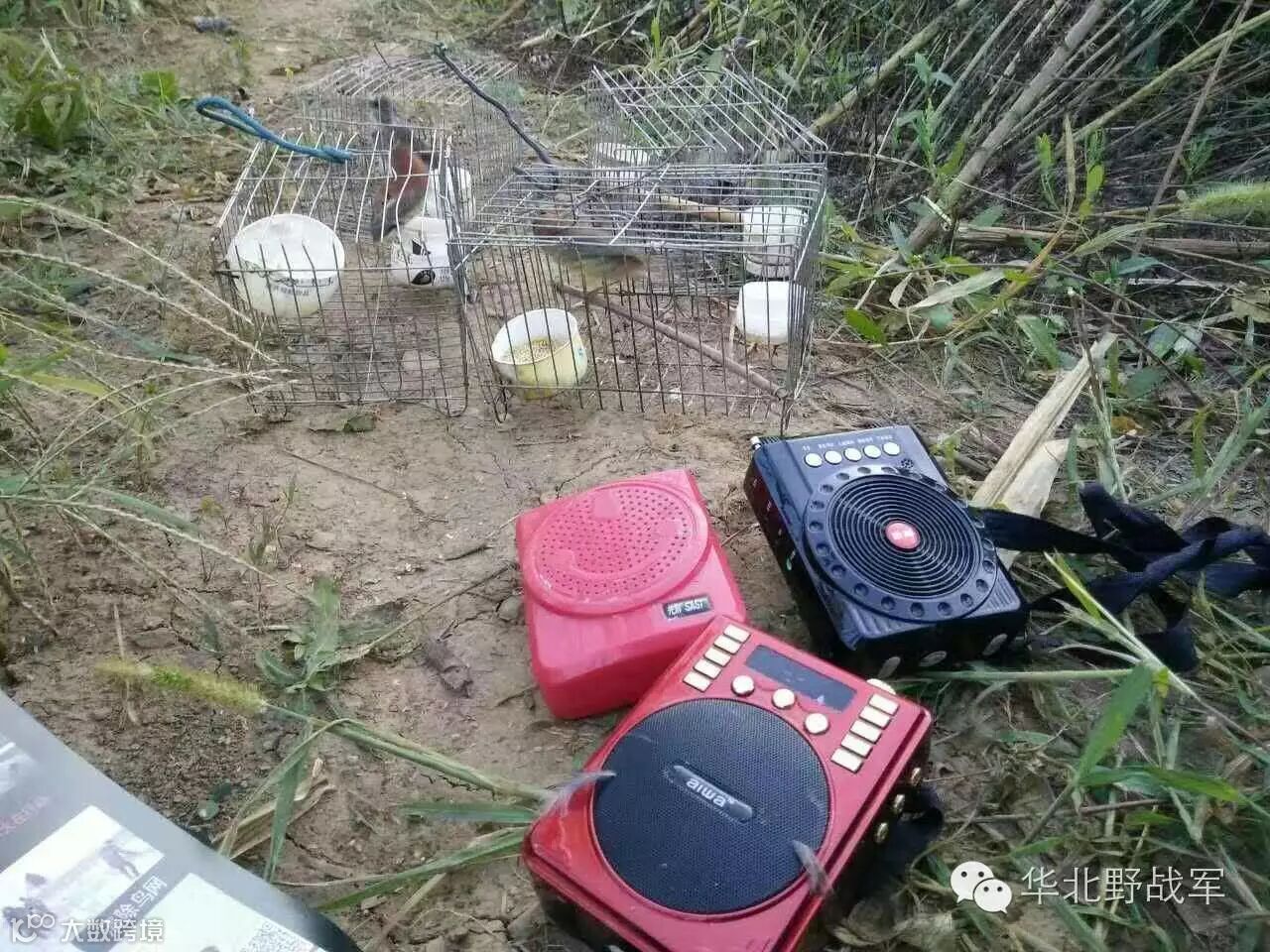 这是捕鸟者的专业设备——诱鸟机,他们会在凌晨三四点将诱鸟机挂在鸟网四周,循环播放鸟儿的叫声,从而吸引“同伴”落网!