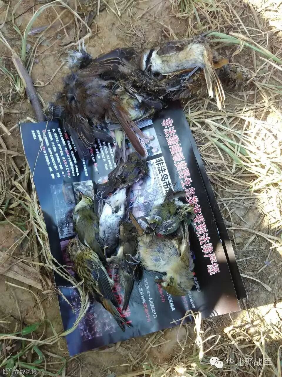 上午共拆除 200米鸟网,死亡12只鸟。 解救放飞45只鸟,其中包括,普通朱雀30只,栗鹀6只,小鹀4只,柳莺5只。诱捕机三台。