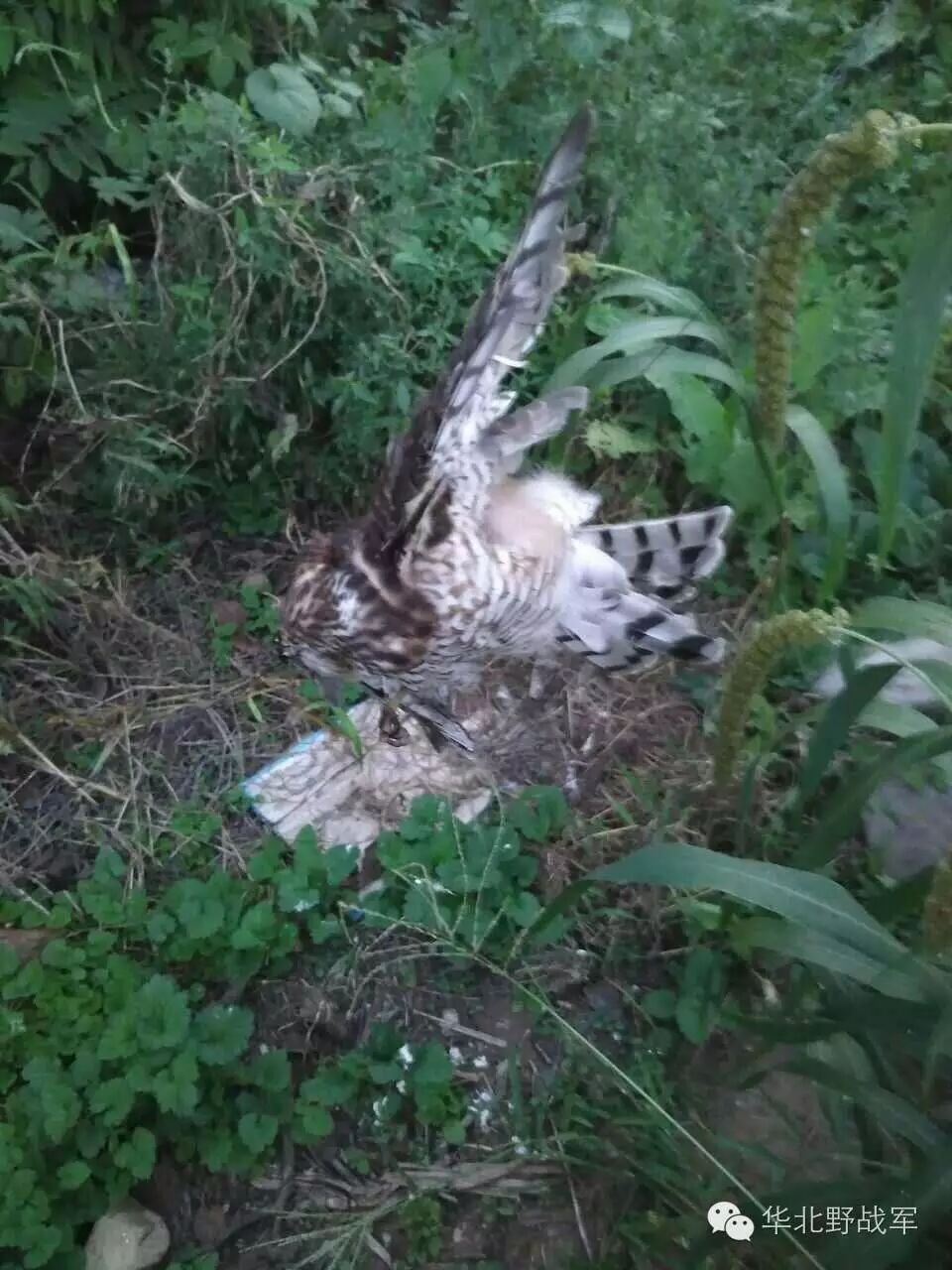 当日下午志愿者路过 蓟县罗庄子镇 杨家峪 农家采摘园 ,远远望去便发现高杆迭起,绕行果园都是鸟网!往果园深处走去,惊讶发现一只松雀鹰挣扎于网上,迅速再往里,不远处另一只松雀鹰高悬网上,却已经惨死鸟网。