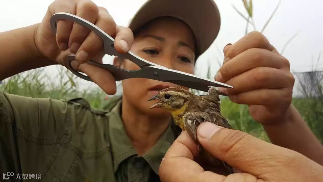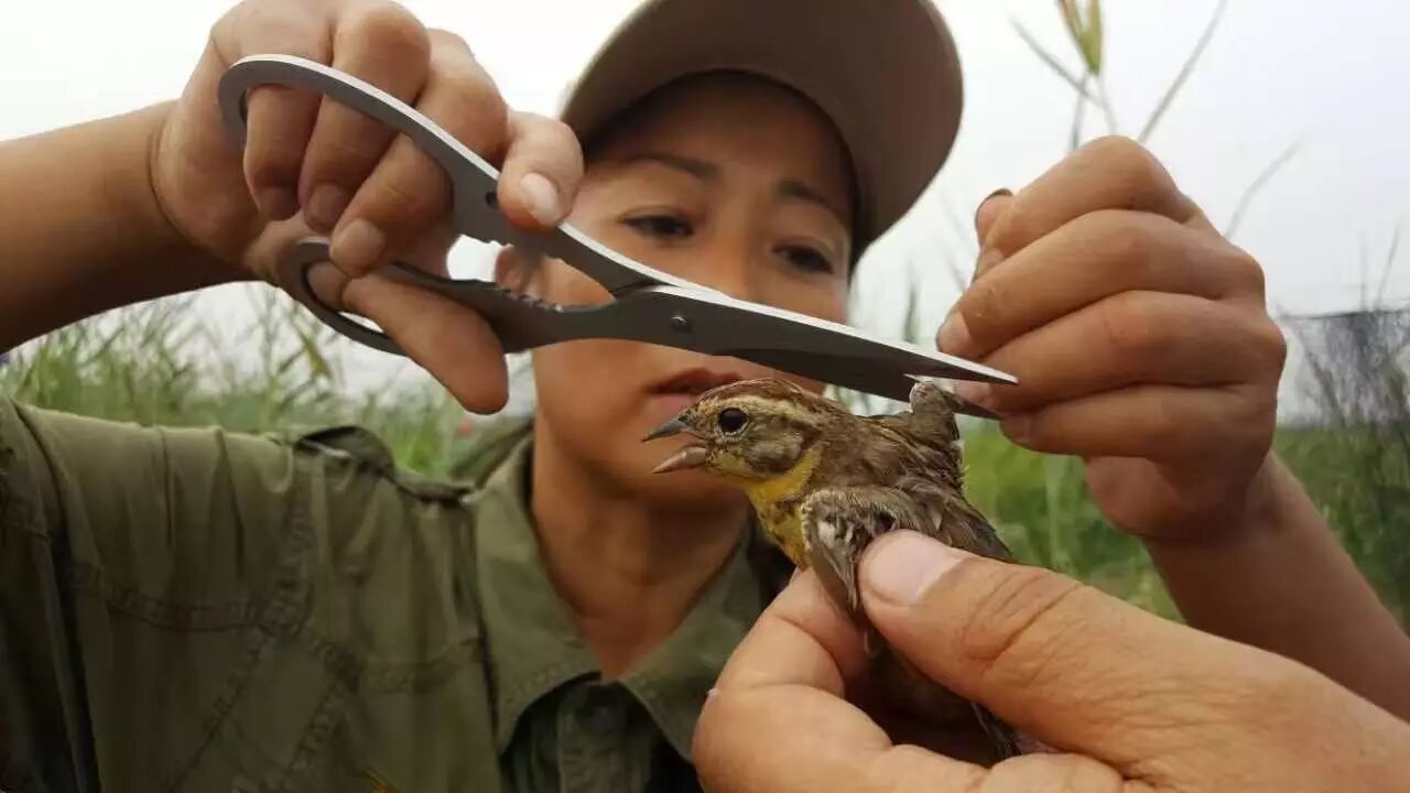 护鸟人刘懿丹解救被困黄胸鹀