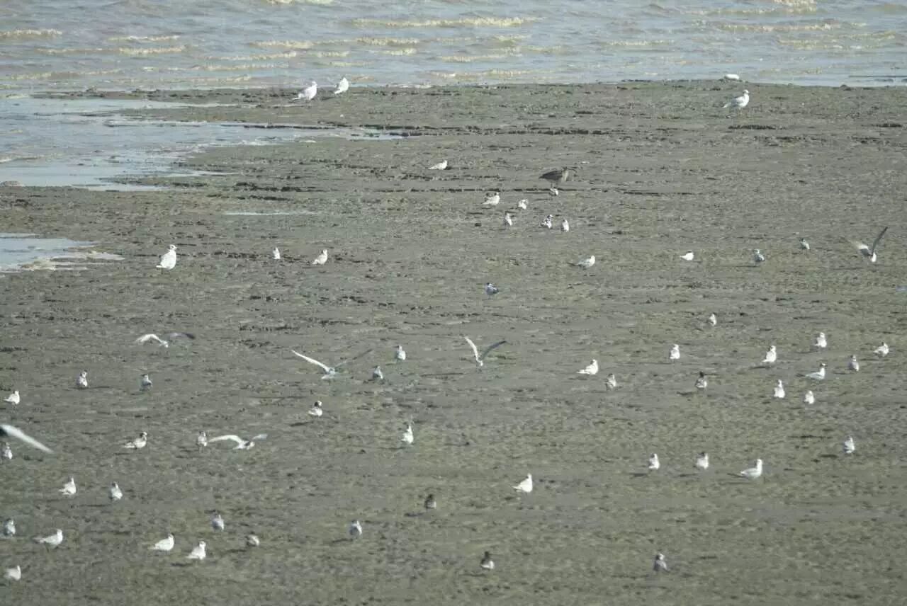 途中,我们看到了大杓鹬、黑翅长脚鹬、反嘴鹬、环颈鸻、须浮鸥、苍鹭等多种候鸟及留鸟。据同行的志愿者介绍:遗鸥迁徙季节刚刚开始,到达滨海新区的是遗鸥的先头部队,数量并不多。因此,我们未能观察的大量的遗鸥。