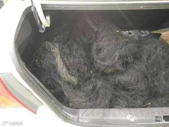 (图:志愿者协助收缴的大片捕鸟网)