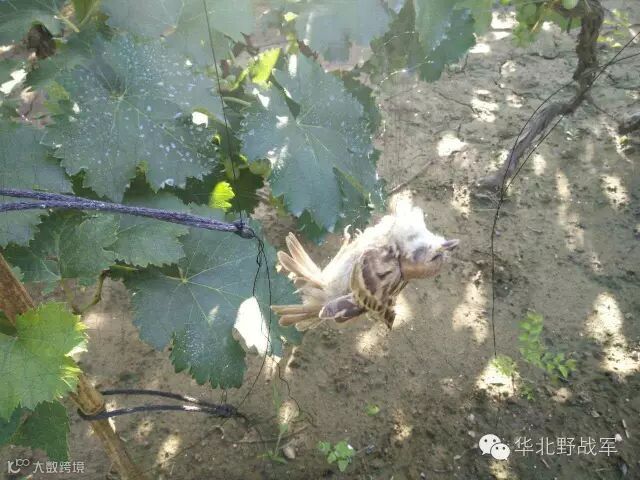 志愿者来到天津北辰区果园4个葡萄园,1个梨树园,共拆除5块地110张网,死鸟52只,活鸟儿1只。现场照片如下: