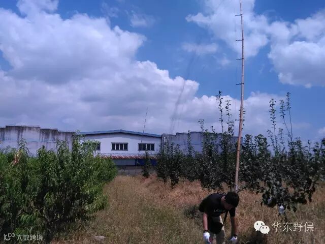 树网的区域都是非大棚种植的地方,志愿者在竹竿下做参照,预计网高有5米,是7层经线的大网。摄影:刘慧莉