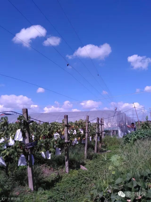 起初回访的叙中路三家果园,有两家是在6月25日已经走刚过的。当时并没有到葡萄成熟的季节,两家葡萄果园主均表示防鸟用套袋子就好,不会再架网。其中的一家还对捕鸟违法有足够的认识。然而,现场情况和我们的发现却并不一样。