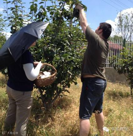 采摘梨,顺便也了解这一家的防鸟方法。这一家果园现没有鸟网,欢迎护鸟志愿者来采摘。