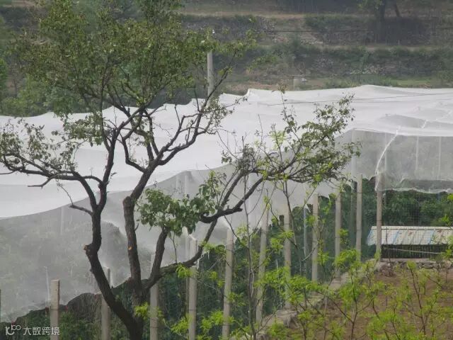 另一家樱桃采摘园的防护也用的5米高粘鸟网