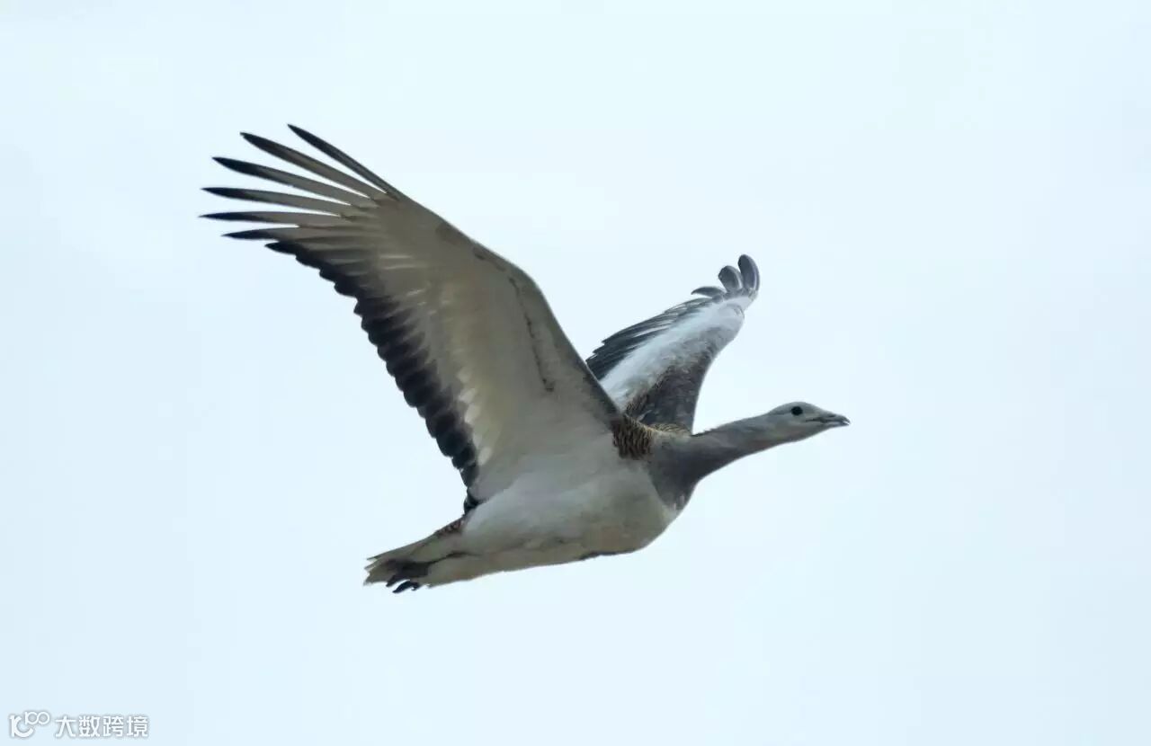 (展翅高飞的雌性大鸨 图/ 王钊)