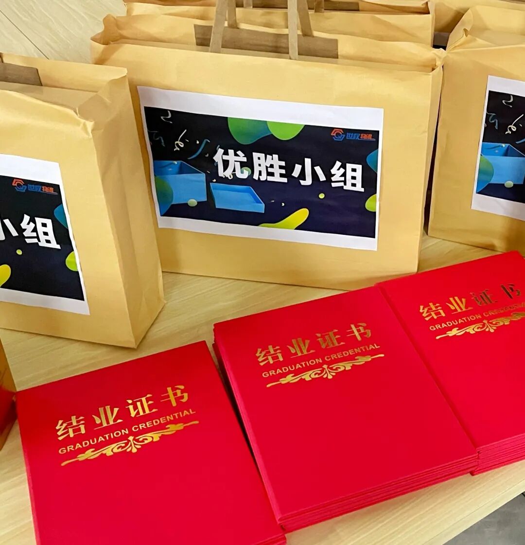 为期三个月的培训中,各位学员表现优异并通过各项测试,人力资源部为各位学员颁发结业证书,同时为培训过程中表现优异的小组及个人颁发奖品。